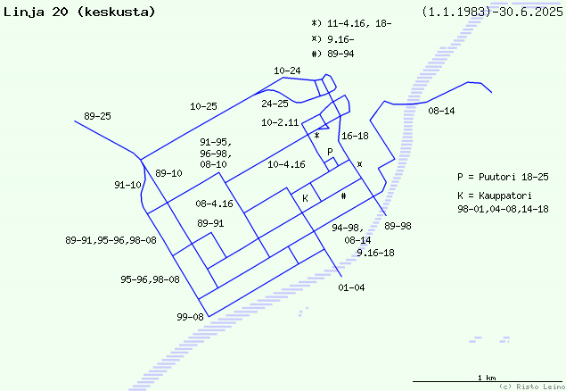 28.9.1998 ...Naantalin pikatie - Puistokatu - Eerikinkatu - Kristiinankatu - Linnankatu - Aurakatu - KAUPPATORI, paluu KAUPPATORI - Aurakatu - Eerikinkatu - Koulukatu - Naantalin pikatie...