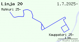 Reitti 17.10.2024-30.6.2025: MUHKURI - Saukonojantie - Uhrilähteenkatu - Alakyläntie - Merikulmantie - Pitkämäenkatu - Naantalin pikatie - Köydenpunojankatu - Köydenpunojankaari - Virusmäenramppi - Yrjänänkatu - Aninkaistensilta - Läntinen Pitkäkatu - Brahenkatu - Sibeliuksenkatu - PUUTORI PT1, paluu PUUTORI PT1 - Maariankatu - Brahenkatu - Läntinen Pitkäkatu - Kuljettajankatu - Ratapihankatu - Verkatehtaankatu - Aninkaistensilta - Raunistulanramppi - Köydenpunojankaari... (4,8 km) (Nobina)