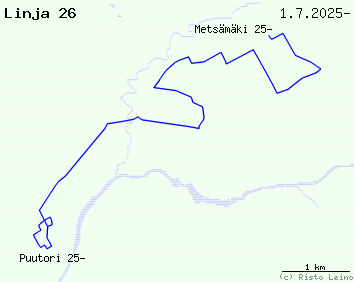 1.7.2025 METSÄMÄKI - Piiskakuja - Silakatu - Pitkäsaarenkatu - Kuormakatu - Autokatu - Polttolaitoksenkatu - Orikedonkatu - Vanha Tampereentie - Hamaronkatu - Emmauksenkatu - Maunu Tavastin katu - Vanha Tampereentie - Raunistulan puistotie - Tampereentie - Aninkaistensilta - Aninkaistenkatu - Maariankatu - PUUTORI PT6, paluu PUUTORI PT5 - Sibeliuksenkatu - Brahenkatu - Läntinen Pitkäkatu - Kuljettajankatu - Ratapihankatu - Verkatehtaankatu - Aninkaistensilta... (9,6 km) (LS-Liikennelinjat)