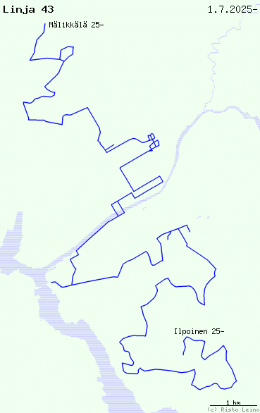 1.7.2025 MÄLIKKÄLÄ - Rakennusmestarintie - Viilarinkatu - Asentajankatu - Kuninkojantie -Markulantie - Suikkilantie - Kustavintie - Talinkorventie - Göteborginkatu - Leningradinkatu - Isotalonkatu - Ruohonpääntie - Vakka-Suomentie - Pietari Valdin katu - Juhannuskatu 10 - Pietari Valdin katu - Köydenpunojankatu - Köydenpunojankaari - Virusmäenramppi - Aninkaistensilta - Läntinen Pitkäkatu - Humalistonkatu - Eerikinkatu (B5/A9) - Brahenkatu - Linnankatu - Eskelinkatu - Eerikinkatu - Puistokatu - Martinsilta - Itäinen Rantakatu - Unioninkatu - Stålarminkatu - Kölikatu (kääntöpaikka) - Vähäheikkiläntie - Uittamontie - Kunnallissairaalantie - Kaupunginsairaala - Kunnallissairaalantie - Citymarket - Kunnallissairaalantie - Kurjenmäenkatu - Kaskentie - Peltolantie - Luolavuorentie - Liisankatu - Rätiälänkatu (eteläosa) - Ispoisten puistotie - Ratsumiehenkatu - Rykmentintie - Rusthollinrinne - Rusthollinkatu - Rykmentintie - Eteläkaari - Meriläistentie - Varsinais-Suomenkatu - Kataraistentie - Eteläkaari - Ilpoistentie - Lauklähteentie - Jaakkimankatu - ILPOINEN, paluu ...Itäinen Rantakatu - Myllysilta - Koulukatu - Eerikinkatu - Eskelinkatu... - ...Läntinen Pitkäkatu - Kuljettajankatu - Ratapihankatu - Verkatehtaankatu - Aninkaistensilta - Raunistulanramppi - Köydenpunojankaari... - ...Markulantie - Viilarinkatu... (33 km) (LS-Liikennelinjat)