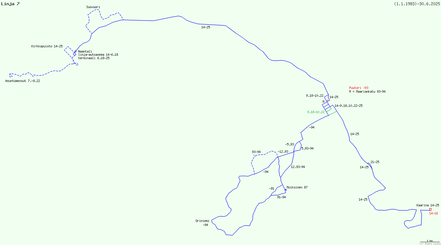 20.12.1993 ...Vähäheikkiläntie - Hirvensalon puistotie - Hirvensalonsilta - Kakskerrantie - Kukolantie... - ...Toijaistentie - Vanha Kakskerrantie - Kakskerrantie - Hirvensalonsilta - Hirvensalon puistotie - Vähäheikkiläntie...